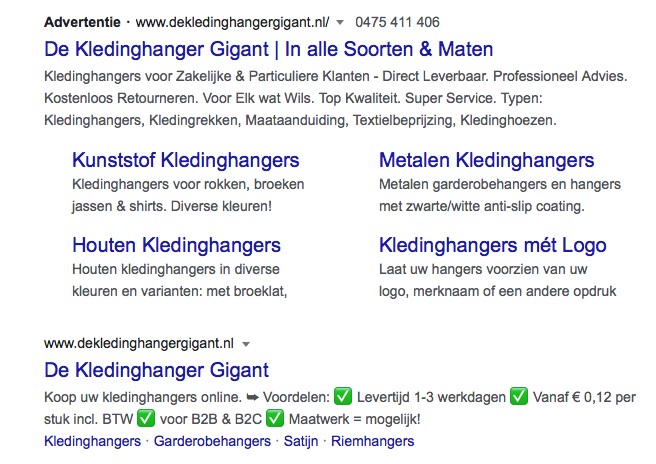 Zoals 4 extra sitelinks naar jouw webpagina's,